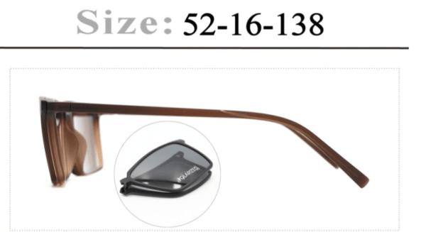 - مقاسات النظارة: (الساق 138- حجم الإطار: 52- حجم الجسر: 16).